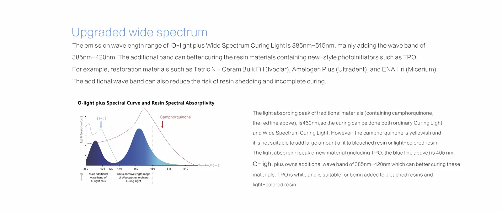 Utvidet spektrum: Skifte fra enkelt blått lys til blåfiolett lys, som kan herde alle typer komposittmaterialer